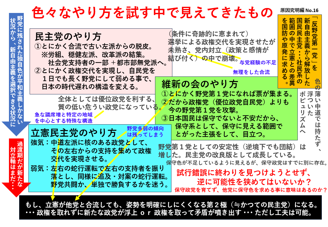 色々なやり方を試す中で見えてきたもの(民主党、維新の会、国民民主党、立憲民主党)