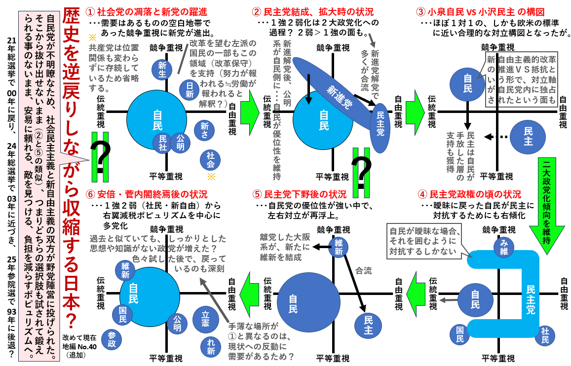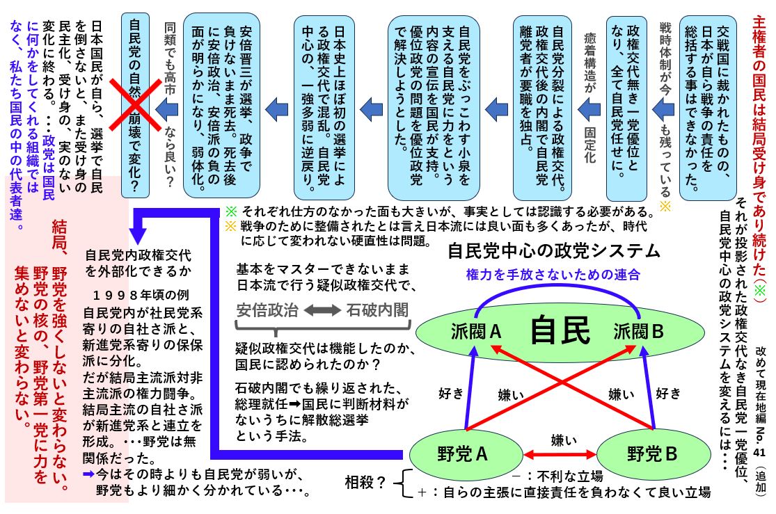 いくら表紙だけは変わっていると言っても、ほぼずっと政治を動かしてきた自民党の優位性を変えようとせず、何が変わるというのでしょうか。野党に問題があるからというのなら、まさにその野党ばかりいじくり回してきたのがこの30年ではないのでしょうか。と、90年代、00年代当時の若者としては思います。